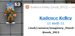 Takes this improved behaviour and packages it into a brand new smite that allows admins to inflict anyone with a permanent imaginary friend. This is not tied to a brain trauma. You can probably give imaginary friends imaginary friends. You can probably give the AI eye an imaginary friend. I have not tested this. It is probably a bad idea.